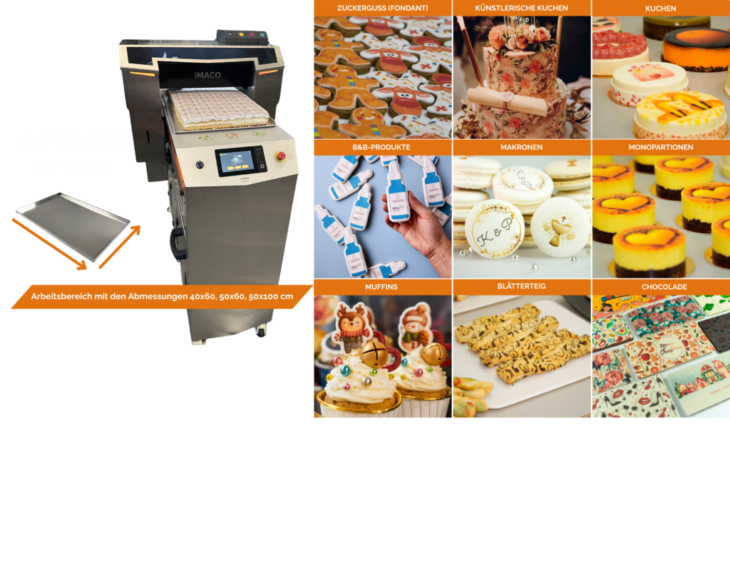 Industrieller Lebensmitteldrucker 40 × 60, 50 × 60, 50 × 100 cm Tabletts
