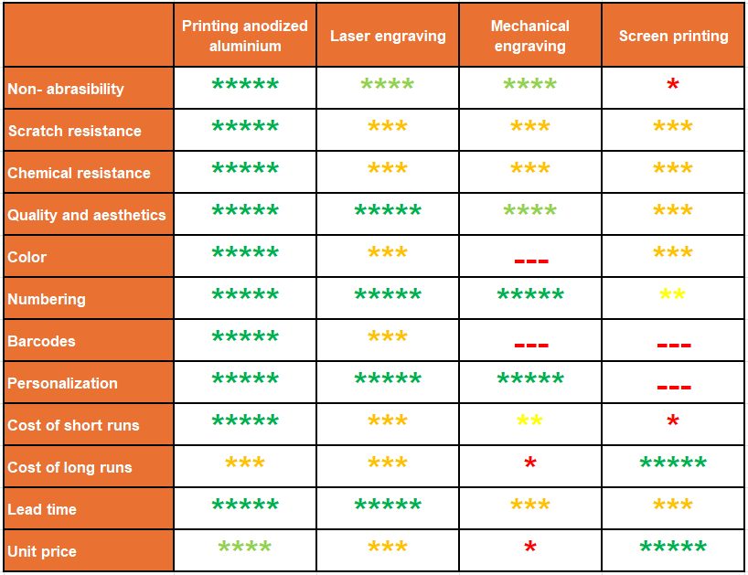 There are several methods of manufacturing nameplates on the market, which vary in terms of materials, durability and cost. Let’s take a look at the most popular technologies:
