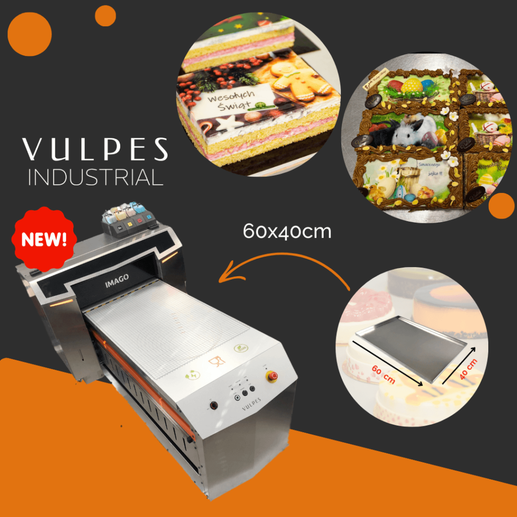 - The ability to print on cakes in the astandard 40 x 60 cm format allows them to be sold by the piece rather than by weight, which increases control over price and profitability.